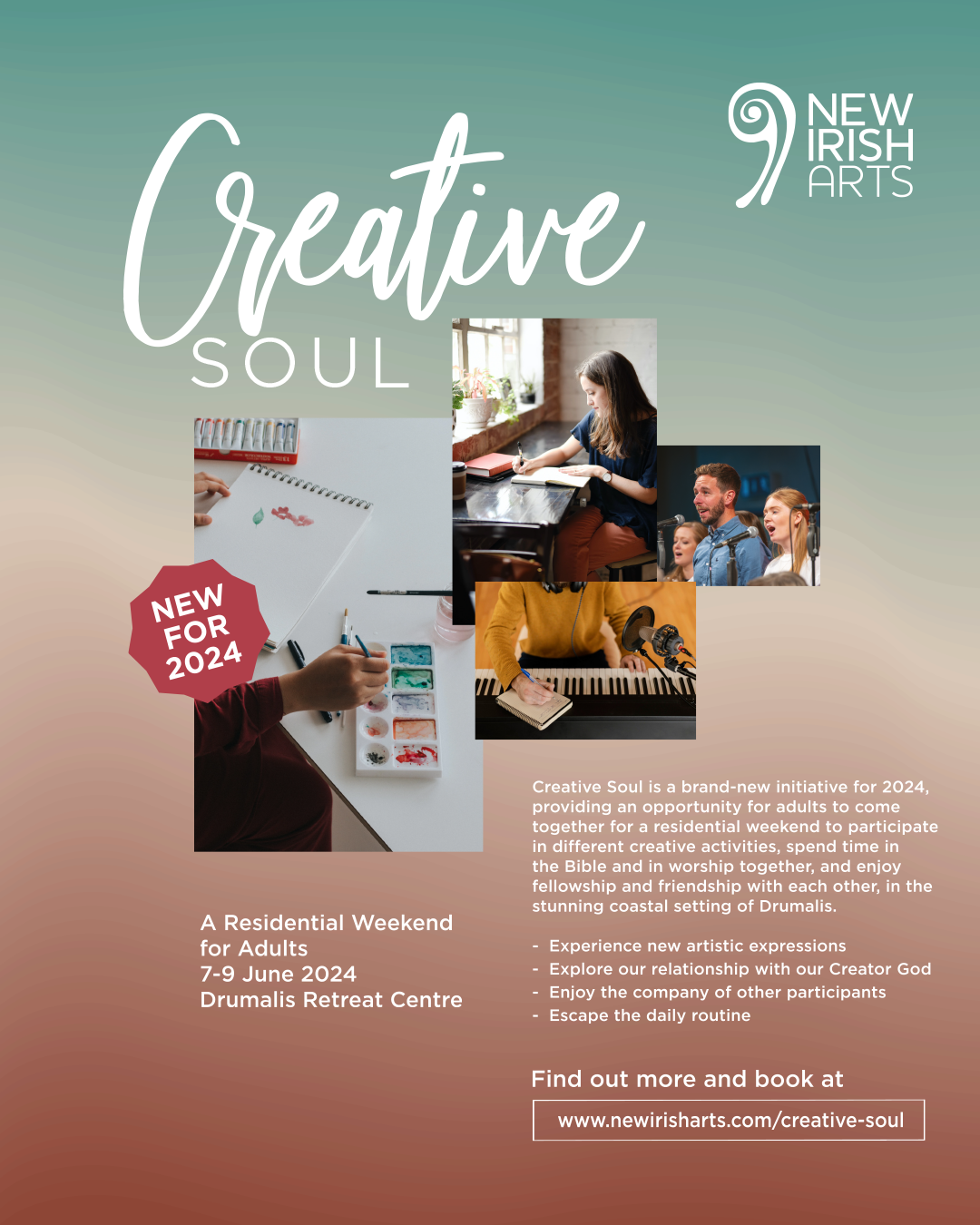 Creative Soul- Registration now open! Booking is now open for our brand-new residential arts weekend for ADULTS- 7-9 June in Drumalis Retreat Centre.Find out more HERE. New IrishMarch 19, 2024 Facebook0 Twitter LinkedIn0 Reddit Tumblr Pinterest0 0 Likes